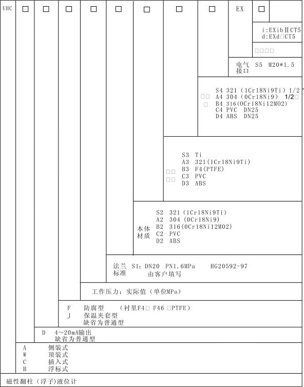 JT-UHZ系列磁翻柱(浮子)液位計的分類與命名 |