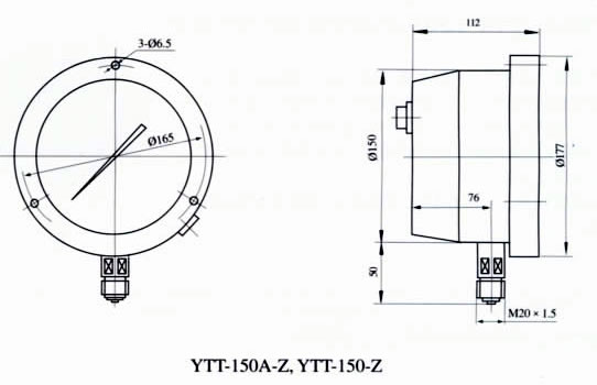 YTT-150A、YTT-150A-Z型儀表供電電源:220V;50Hz。YTT-150、YTT-150-Z型供電電源:24VDC由配電器供電。